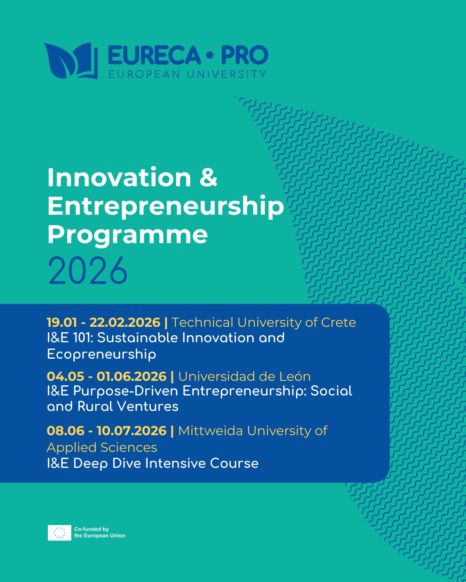 The EURECA-PRO I&E Programme gives you an exciting, practical entry into the world of innovation and entrepreneurship through three targeted courses in 2025–2026: